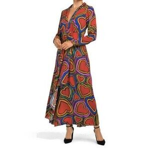 FARM RIO Rainbow Wild Hearts Maxi Dress, new with tags. Size medium. Long sleeve. V neck. 100% rayon. Machine washable. New retail price $220.