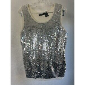 DFA New York Sleeveless Top Silver Sequin Women's Large Vintage Y2K