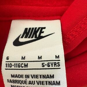 The Nike Boy Size 6-2pc Hooded Jogging Set in Red/Black is a stylish and comfortable outfit perfect for active little boys. Made from a cotton blend material, this two-piece set includes a hoodie with long sleeves and pullover closure, as well as matching pants. The set features the iconic Nike logo accents and is suitable for both activewear and casual occasions. With a solid color pattern and easy care instructions, this outfit is ideal for all seasons and can be machine washed for convenience. Perfect for keeping your little one warm and stylish during outdoor activities.