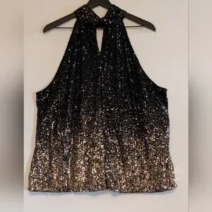 The Limited 2X Sequin Halter Top Black Gold Ombre Party Holiday Club Plus Classy