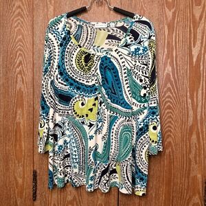 Keywords: Susan Graver, Paisley Top, Womens Top, XL Top, Blouse, 3/4 Sleeve, Green Top, Teal Top, Blue Top, Bohemian Top, Casual Top, Printed Top, Statement Top