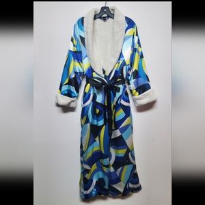 Designed in size XS with a relaxed, flattering fit, it features long sleeves, a belted waist, and a soft plush fleece lining that provides warmth and comfort — perfect for cool mornings or relaxing evenings at home.