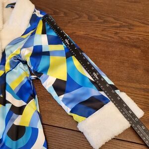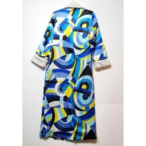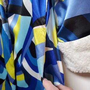 RARE Vtg Victoria's Secret Satin Robe XS Funky Geometric Dopamine Fleece Lined