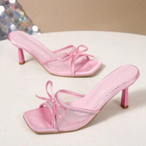 Step into a fresh look with pink slip‑on sandals that blend minimalist style and subtle flair. A delicate bow accent adds charm, while the open toe and pyramid mid‑heel (7 cm) provide elegant height without sacrificing comfort. The slingback strap offers a secure, true‑to‑size fit, making these sandals ideal for all‑day wear from casual outings to polished events.