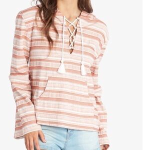 NWT WOMENS ROXY Paradise Calling Woven Poncho Hoodie PINK and white size S / L