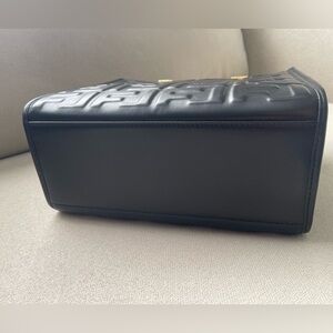 Authentic Fendi Sunshine Small black Embossed Tote with Tortoiseshell Handles. Features embossed leather and Stylish tortoiseshell handles. It comes with removable shoulder strap and original dustbag. Condition is like new. Last photo is a different tote without the embossing but shared to give you an idea of the size.