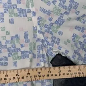 This is a stylish and comfortable short-sleeve button-up shirt from Rocawear. Made from 100% cotton, it's breathable and perfect for casual wear. The shirt features a unique all-over geometric graphic print in shades of blue, green, and pink on a white background, giving it a distinct look. An embroidered Rocawear logo on the chest adds a subtle touch of branding to this standout piece.