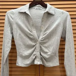 Reformation Light Gray Ribbed Button-Down Shirt size small