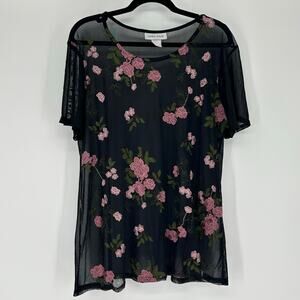 Caren Sport Vintage Sheer Mesh Embroidered Pink Flowers Sz 2X