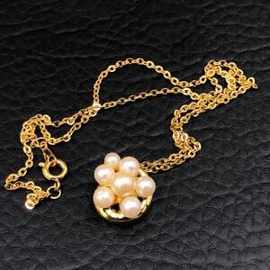 Vintage Necklace 16" Faux Pearl Cluster Pendant Richelieu Gold Tone Chain