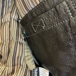 Classic leather bomber by Danier. Fully lined and insulated with thinsulate. Features a sleek design with front pockets and inside pockets. Perfect for any occasion. Dark brown genuine leather, men’s size S