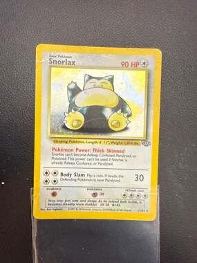 Vintage 1999 Pokémon Jungle Snorlax Holo #11/64 Rare Unlimited Edition Card. This classic card features the iconic sleeping Pokémon with the standard holographic finish from the 1999 Jungle set.\n\nCard details:\n- Set: Jungle\n- Rarity: Rare Holo\n- Number: 11/64\n- Edition: Unlimited\n\nCondition: Used. The card shows visible signs of wear including some surface scuffing and edge wear. Please review images for a detailed look at the holographic surface and corners. A great addition to a binder collection or for a nostalgic gift.