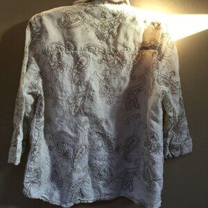 Carole Little Womens Paisley Top Blouse Casual Button Up 3/4 Sleeve Large Ivory