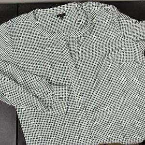 Talbot's button up blouse for women in size 2X. White with green houndstooth design all over. Button cuffs.