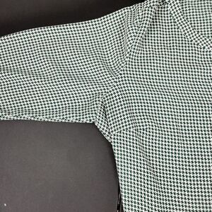Talbots Blouse Womens 2X Green Houndstooth Long Sleeves Lightweight Button Up