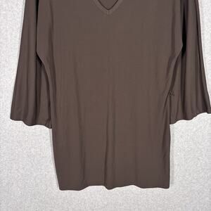 Liz Claiborne Top Large Tunic Slinky Flowy Long Career Neutral Lagenlook **