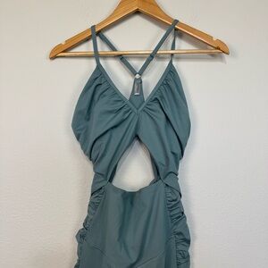 NWOT Free People FP Movement Balancing Act Onesie Jumpsuit One-piece Ruched V Neck