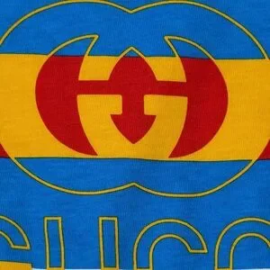 Stylish Gucci set for kids. Features white base with bold blue, red, and yellow accents. Perfect for adding luxury to mealtime. Bundle Up For A better Deal