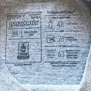 Patagonia Shaka Wave Responsibili-T-Shirt. Heather gray, short sleeve, crew neck, size medium. Excellent pre-owned condition. Smoke and pet free home.