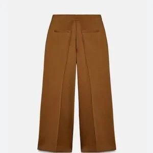 Zara Satin Effect Caramel Wide Leg Trouser Pants
