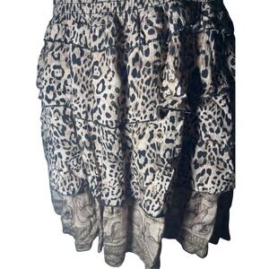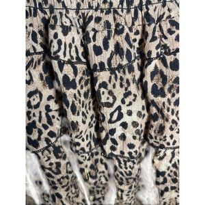 Animal Print Smocked Tiered Mini Dress Leopard Elephant Border Ruffle Boho SZ S