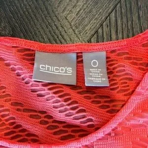 Chico’s top in good used condition from a smoke-free home. Material: 67% polyester, 27% rayon, 6% spandex. #chicos #top #polyester