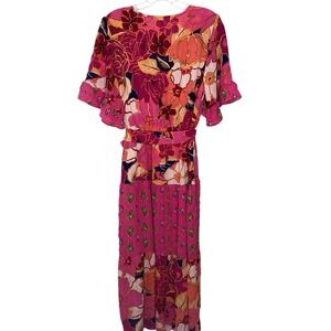 Anthropologie Fig And Flower Estilo Dress Sz L Pink Maxi Prairie Easter NWT