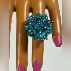Boutique Blue Crystal Flower Statement Ring - Multi-tonal Adjustable