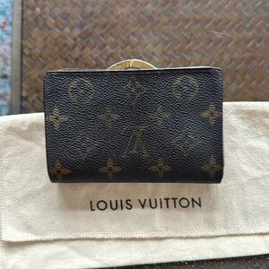 Elegant Louis Vuitton wallet. Features iconic monogram design. Compact and stylish.