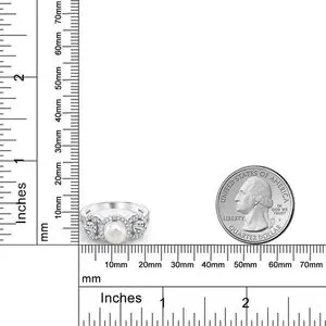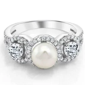 1.46ct White Topaz Diamond Pearl Ring Cultured Freshwater 925 Gift Engagement
