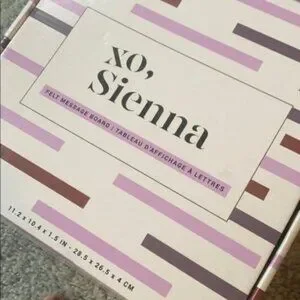 In box: message board w pine frame and black felt center. 189 plastic white letter numbers and symbols, storage bag and metal wall mount hanger