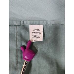 The Flying R Ranchwear Rancher Crease Green Pearl Snap Long Sleeve Men's shirt in size L (16.5-35C) features a solid green color with a collared neckline and snap closure. Made of a comfortable polyester and cotton blend, this button-up shirt is machine washable and easy to care for. It also includes convenient pockets and a regular fit, ideal for casual occasions year-round. The shirt is proudly made in the United States and showcases a classic point collar style.