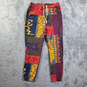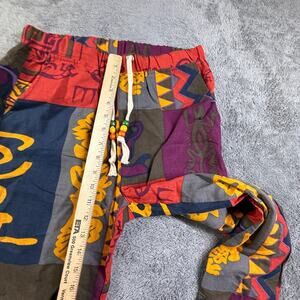 Womens Boho Hippie Pants S/M Pull On Drawstring Woven Colorful Yoga Airy