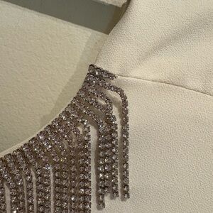 Rhinestone string details along the neckline.