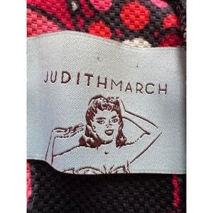 A burst of vibrant energy, this Judith March dress is a statement piece ready to turn heads. The strapless design accentuates your shoulders, while the playful floral print in shades of red and pink against a black backdrop exudes a flirty, feminine charm. The fit-and-flare silhouette flatters your figure, creating a classic and timeless look. Features back zip, black rick rack trim, pockets, boning at bust
