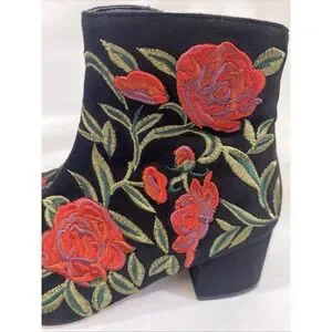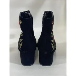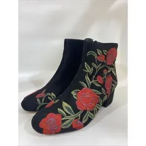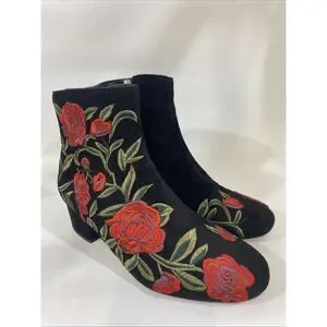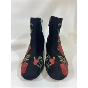 Comfortview Women's Sidney Bootie Embroidered Red Roses Black Velour Sz 7.5 Wide