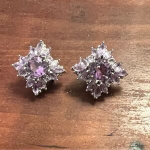 lavender gemstone earrings, natural amethyst jewelry, floral cluster studs, marquise cut earrings, cocktail earrings, statement studs, sterling silver earrings, purple stone jewelry, dressy evening earrings, giftable gemstone accessories