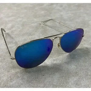 Ray-Ban RB 3025 112/17 58-14 Aviator Large Metal Gold Sunglasses Blue Mirror