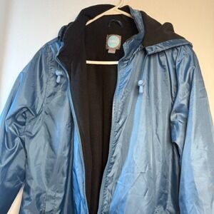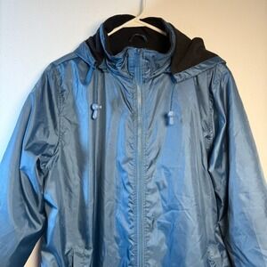 Totes Three Season Full-Zip Rain Coat Jacket Size L Blue Navy Hooded LONG Zip Up