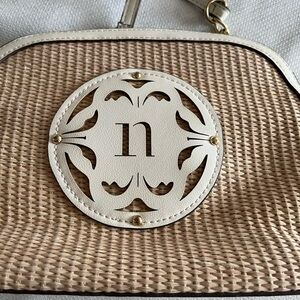 Nanette Lepore faux straw crossbody bag. Detachable card holder included. Adjustable strap. EUC