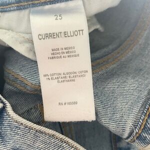 Keywords: Current Elliott, jeans, denim, womens jeans, light wash, distressed jeans, size 25, casual, stylish, ripped jeans, straight leg