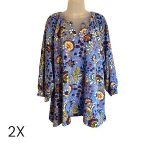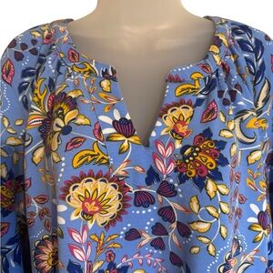 Kim Rogers Blue Floral Spring V-Neck Top PLUS: 2X #6
