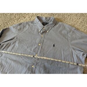 Ralph Lauren Custom Fit Mens Long Sleeve Button Down Light Blue Plaid Shirt XXL
