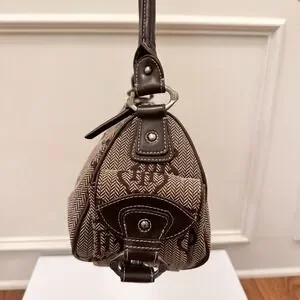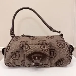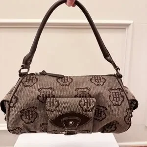 Vtg Y2K Tommy Hilfiger Logo Brown Purse Shoulder Bag Fall Herringbone EUC