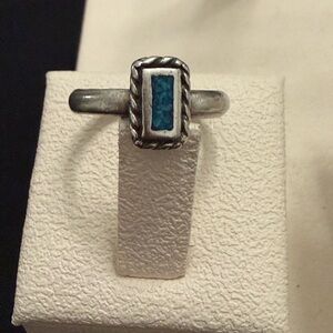 π Matching rectangular turquoise inlay ring β Size 4 (perfect pinky ring!)