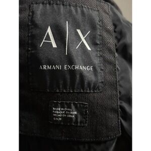 Armani Exchange Black Moto Leather Jacket Zip Front Snap Collar Ribbed Shoulders