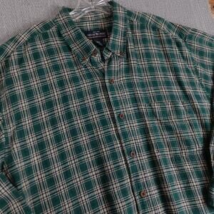 Moose Creek Heavy Linen Shirt Mens XL Green Plaid Button Down Relaxed Outdoors