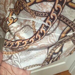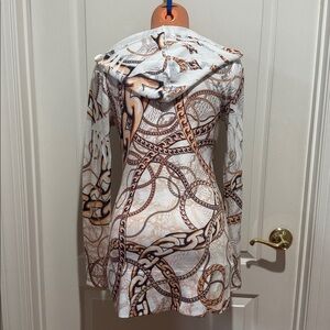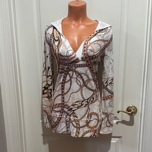CACHE Ivory Gold Embellished Chain Print Hooded Surplice Sweater M Medium $88 KL