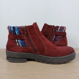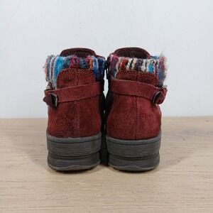 Earth Origins Boots Women 8.5 Red Leather Buckle Strap Boho Winter Ankle Bootie