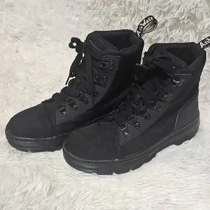 Built from robust Cyclone Nylon, the new Combs W is fitted with a padded collar for comfort as well as utilitarian-inspired hiker hooks and D-ring fastening, black stitching and scripted heel loop mark them as DM'S